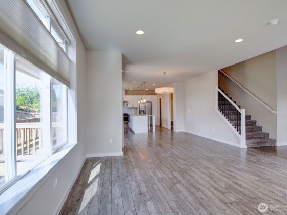 Super convenient location! Close to parks, elementary and middle schools. Easy access to I-5 and a variety of nearby shopping. This spacious 3 bedroom, 2.5 bath home offers an open floor plan, cozy fireplace, and whole-home ventilation system. Large kitchen with walk-in pantry and center island with seating option. 9 ft ceilings, lots of natural light, covered deck, fenced yard, 3 car garage to be finished to your liking, endless hot water with on-demand water heater. Option to convert upper recreational space to 4th bedroom. Additional downstairs office/flex room with brand new carpet. Upstairs carpet professionally cleaned. Move In Ready!