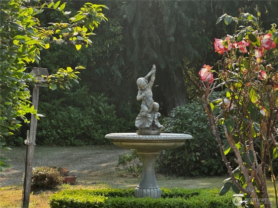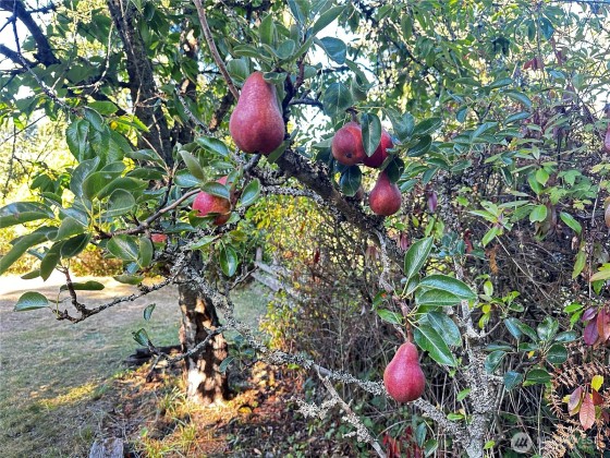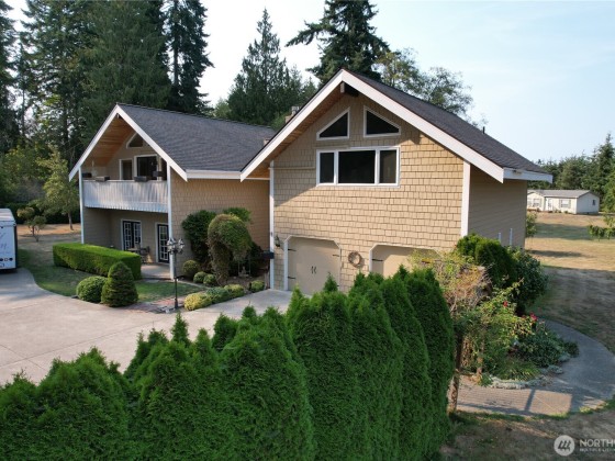A 1.3-acre retreat offering space, privacy, and lifestyle. The main level features a welcoming foyer with wet bar, 2 bedrooms, a full bath, rec room, and utility room. Upstairs, enjoy a massive vaulted great room with brand-new carpet, propane stove, and abundant light, plus a private master suite with soaring ceilings, walk-in closet with in-wall safe, and chalet-style deck overlooking manicured gardens. Grounds include fruit trees, a decades-shaped canopy cherry, fountain, hedges, and outbuildings for storage. Additional amenities: 2 propane stoves, 2 water heaters, a 2-car garage, private well, no HOA, and proximity to Robin Hill Park and the Olympic Discovery Trail. A rare Sequim gem offering both comfort and independence.