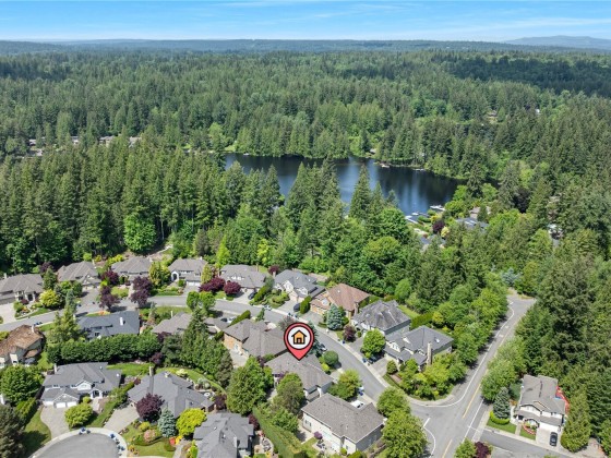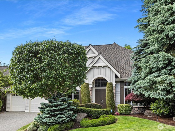 Welcome to this stunning Buchan home in coveted Beaver Lake Estates. Open the door to witness towering vaulted ceilings, refinished hardwoods, and a sunlit open layout. Chef’s kitchen boasts slab granite, custom cabinetry, stainless appliances, and a large island. Main floor guest suite with attached bath offers ideal multi-gen flexibility. Upstairs, the expansive primary suite includes a five-piece bath and dual walk-ins, plus 3 more bedrooms and a bonus room. Enjoy a serene, park-like backyard retreat perfect for entertaining this summer. Recent upgrades: newer furnace, A/C, hot water tank, fresh paint, 50-year roof, and refinished floors. Close to trails, Beaver Lake, and Issaquah schools. This is Pacific Northwest living at its best!