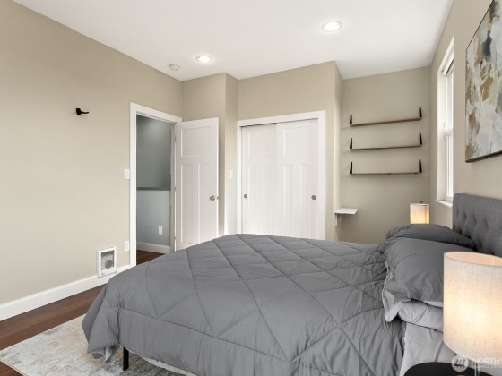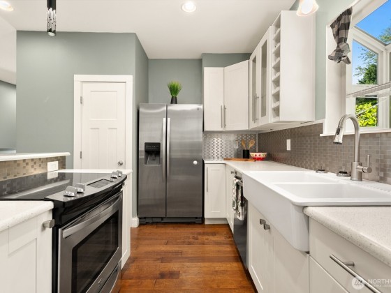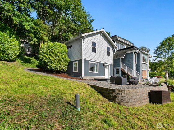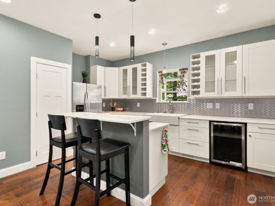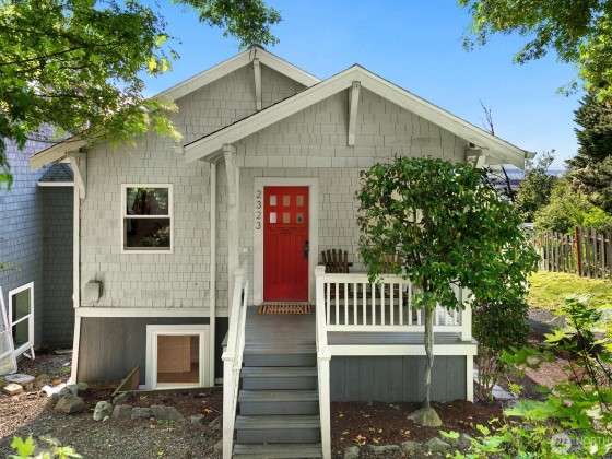 Overlooking the city with incredible views of SoDo, the sound, and the mountains, this Beacon Hill home blends craftsman charm with a refreshed interior that feels unexpectedly spacious and bright. The updated private primary suite includes a spa-inspired bath with a stone and tile shower, radiant heated tile floors, and a striking live-edge wood countertop. The kitchen centers around a large island with eating space and features a tile backsplash, farmhouse sink, wine fridge, and stainless appliances. Just a short walk or bike ride to Beacon Hill Light Rail and the Mountains to Sound Greenway Trail. Open lot with more privacy that most other nearby homes. VA buyers may assume the current VA loan at 2.99%!