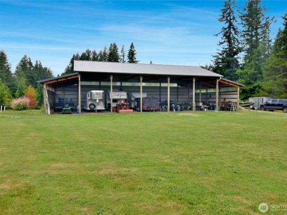 Escape to your own private retreat on this 5-acre equestrian property. Updated daylight rambler w/ wood stove in the living room & remodeled light & bright spacious kitchen. Primary suite has a private door that leads to the large deck overlooking the property. Perfect for horse lovers, hobby farmers & homesteaders, w/a 3 stall barn + storage, large garden fully fenced w/raised beds, greenhouse & fruit trees. Next to the garden is a fully fenced dog run perfect for your pups. The 40X85 pole building is a great place to park all your toys and farm equipment. Detached garage is ideal for storage or projects with it's own wood burning stove. Downstairs family room, 3/4 bath, utility room and mudroom for when you come in from working outside.