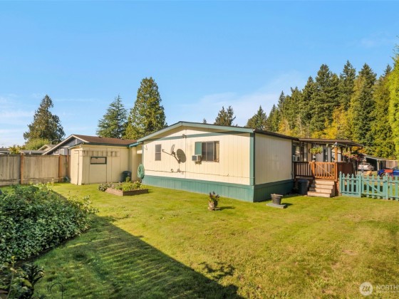 Welcome to the desirable 55+ community of Crystalaire Mobile Home Park! This home is situated on one of the largest lots in the community and offers a beautifully landscaped, fully fenced backyard with privacy trees, a raised flower bed, and a storage shed for your gardening tools. Enjoy outdoor living year-round with a covered deck that’s just 4 years old. Inside, you’ll find 3 bedrooms and 1¾ bathrooms. All kitchen appliances stay plus the washer & dryer and an extra fridge included for your convenience. A spacious storage room off the carport is ideal for hobbies or extra belongings. The carport and driveway can accommodate 2 cars tandem. The park also offers RV/boat storage for an additional fee.