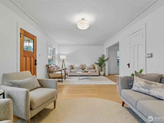 Nestled on a quiet street in Wallingford, this 3-bed, 2.75-bath Craftsman blends classic charm with thoughtful updates. The main floor offers 2 bedrooms, a welcoming living room with formal dining, and a gourmet kitchen with a casual eating nook. Upstairs, French doors open to a spacious primary suite with space for a home office or bonus room. Fresh paint, new carpet, and updated lighting make it move-in ready. With 1807 sq. ft. of finished space plus 790 sq. ft. in the unfinished basement, this home offers ample room to live, work, and grow. Outside, an expansive deck provides room for entertaining or relaxing. Just moments from the action this Wallingford gem offers the perfect mix of character and modern comfort.