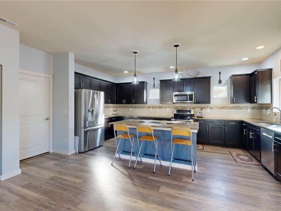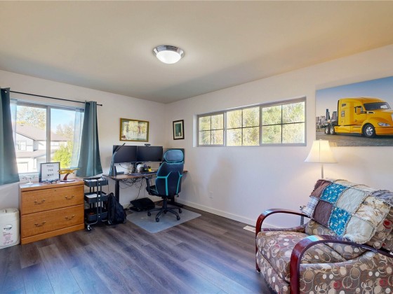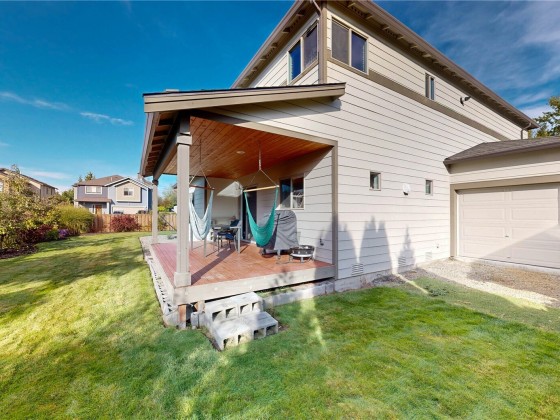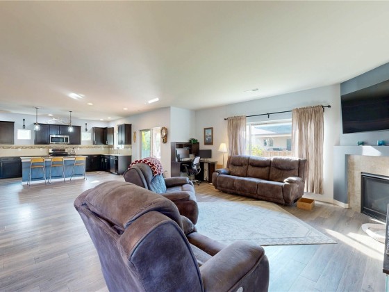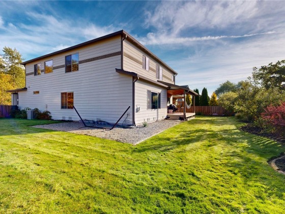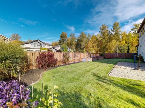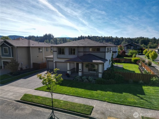 Life in Perkins Prairie, Buckley. This home is designed for space, comfort, and connection. The open-concept layout includes a gourmet kitchen with center island, quartz counters, ss appliances, & pantry, opening to the dining area & great room with cozy fireplace. Oversized bedrooms provide room for everyone. Double-door entry, LVP flooring through most of the home, and a bonus room with French doors add style and function. Upstairs, retreat to your private primary suite with sitting area, 5-piece bath, & walk-in closet. Enjoy a quiet setting across from wetlands, nearby Foothills Trail, and a covered deck. The fenced yard features raised garden beds, a 3-car garage with pass-through bay, storage, tasteful landscaping, & A/C. Welcome Home!