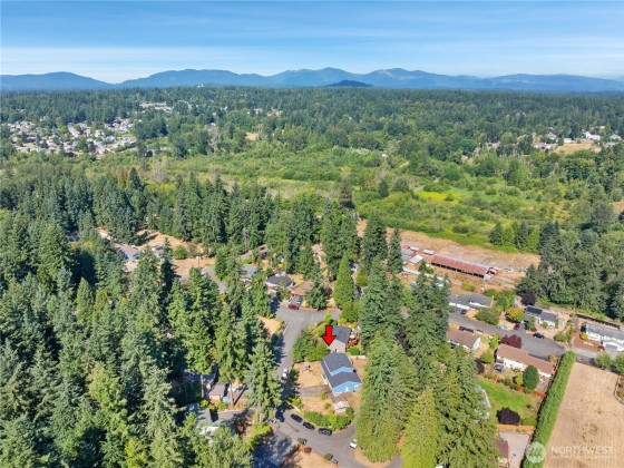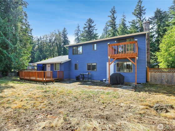 Spacious & nicely updated 2-story home nestled on a big lot in a quiet cul-de-sac neighborhood. Easy flowing floorplan w/versatile rooms on main level to use as you wish. Stylish kitchen boasts tile backsplash & opens to family room w/cozy wood burning fireplace. Large front room for formal living or dining plus bonus room in back. 5th bedroom or office & 3/4 bath also on the main. Primary retreat w/large walk-in closet & private deck, 3 additional generous sized bedrooms & large bath w/2 showers all upstairs. Entertainment deck & huge patio area out back. Plenty of space for RVs/boats & all your toys! A/C to keep cool. Fruit & almond trees. Close to schools, great food, shops, services, transportation, parks, Soos Creek trail & much more.