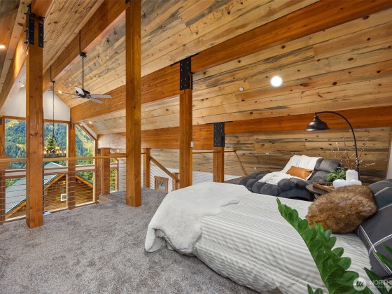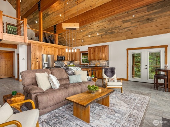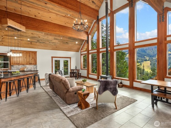 Experience the ultimate PNW ski lifestyle in this newly built, fully furnished, open-concept ski-in/ski-out home on private land at Crystal Mountain, featuring three versatile sleeping areas. Just steps from the chairlift. Floor-to-ceiling windows frame sweeping views of the resort, with an open kitchen, great room, two living areas, main-level bedroom, loft for sleeping or office space, bunk room, mudroom, large laundry room with wall-to-wall storage, modern open beam staircase, and heated floors throughout. For full year usage, enjoy the large deck that overlooks a stream for summer evenings after hiking. Perfect for ski and outdoor enthusiasts, this turnkey retreat offers front-row access to world-class skiing—ready for you this season.