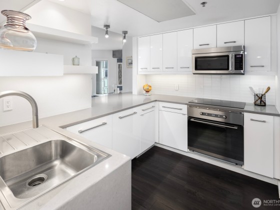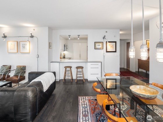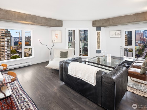 Elliott Bay, Lake Union, Cascade Mountains & City Views from this beautifully situated condo at Arbor Place! Expansive windows frame the dynamic Seattle skyline. A sophisticated palette of modern white pairs seamlessly with dove-gray engineered hardwoods and architectural exposed concrete columns. The chef’s kitchen and spa-inspired bath have been thoughtfully updated with sleek finishes and premium details. Convenient in-unit laundry. The spacious primary suite features frosted-glass closet systems for stylish organization. Residents of Arbor Place enjoy a walk-to-everything location plus 24/7 concierge service, fitness center, pool, and expansive community terrace.