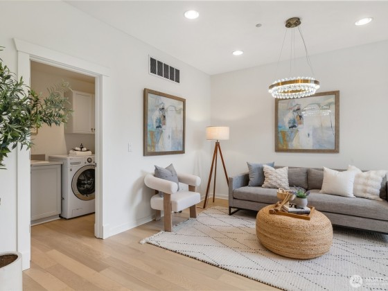 Embrace effortless, lock-and-leave lifestyle, Cottages HOA covers everything from exterior painting, roof replacement to landscaping, irrigation, driveway upkeep, & master insurance w/earthquake coverage. This sun-drenched modern craftsman townhouse offers the space & elegance of a single family house, featuring 4 bds, 2 living areas w/a cozy gas fireplace, a formal dining room, a spacious kitchen w/quartzite countertops & wood cabinets; 2 car garage. Thoughtfully updated w/newer roof, furnace, AC, fresh interior & exterior paint, & new engineered hardwood floors throughout. Abundant crown molding, trim, & stucco siding showcase timeless grace. Fantastic walkability to Grand Ridge elementary, parks, trails, shopping, dining & park-and-ride.