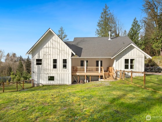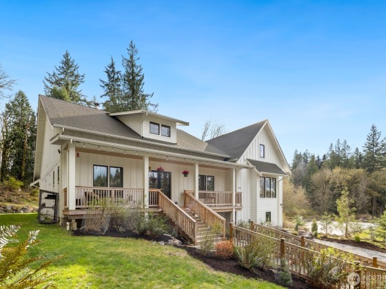 First time on the market! This custom-built modern farmhouse sits on 6.8 serene acres, just steps from Lord Hill Park’s scenic trails. Inside, enjoy an open-concept design, vaulted ceilings, and oversized windows flooding the space with natural light. The gourmet kitchen boasts premium appliances, custom countertops, and a spacious island with private deck access—perfect for entertaining. The primary suite features a spa-like bath and walk-in closet. Relax on the expansive porch, host gatherings, or explore renowned wineries just minutes away. W/ breathtaking views, modern comforts, and endless adventure, this one-of-a-kind retreat offers luxury, privacy, and the ultimate PNW lifestyle—& a 3rd room w/ 3/4 BA upstairs for guests/office.