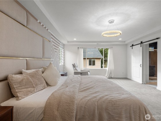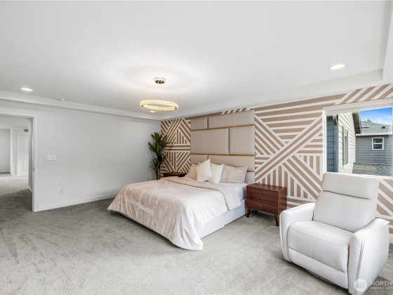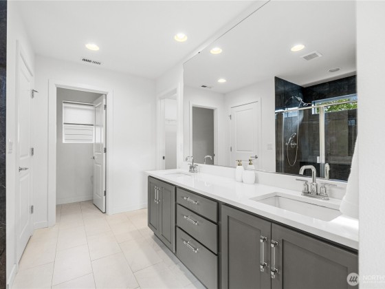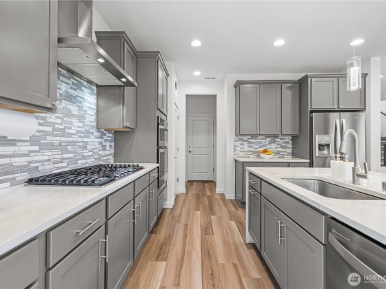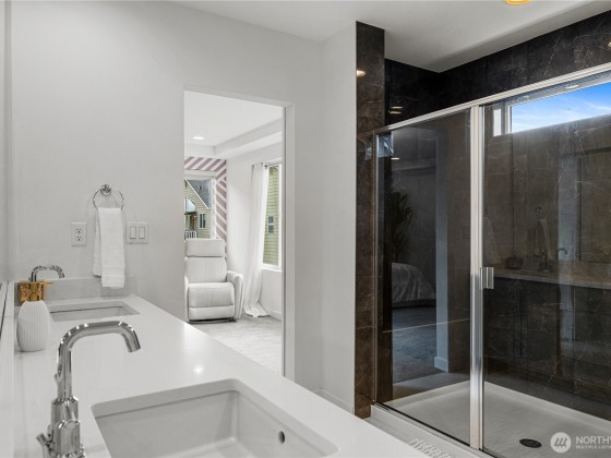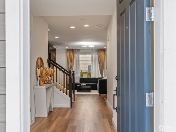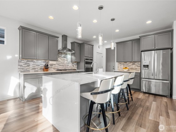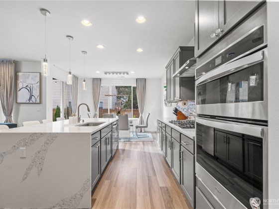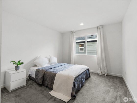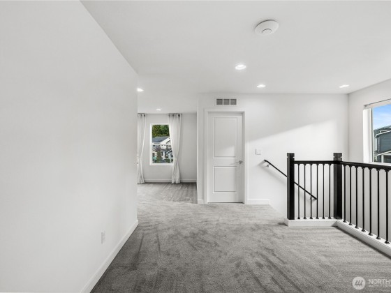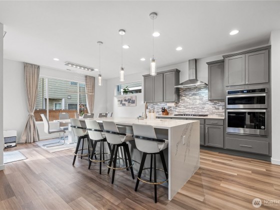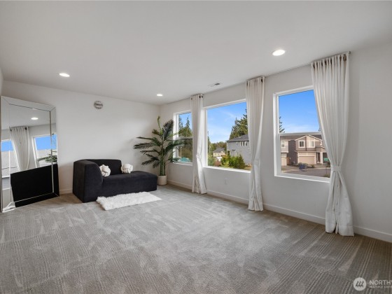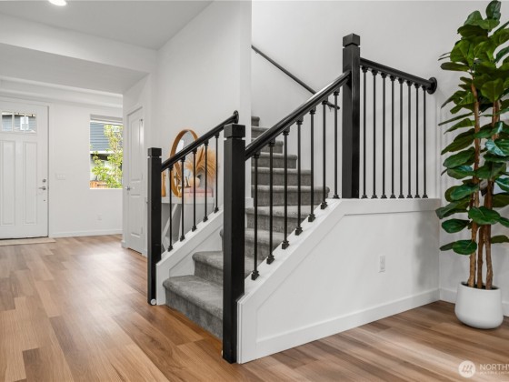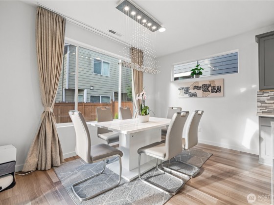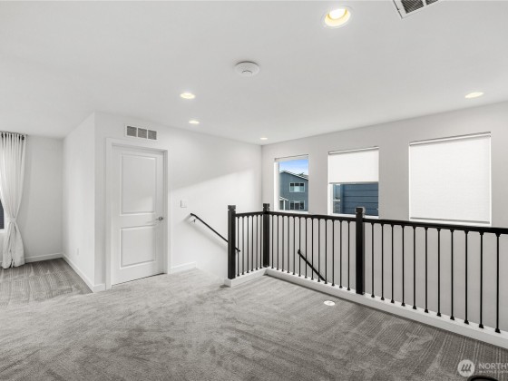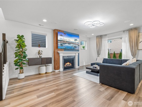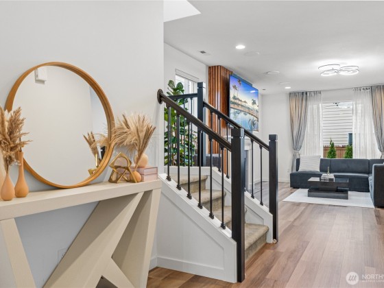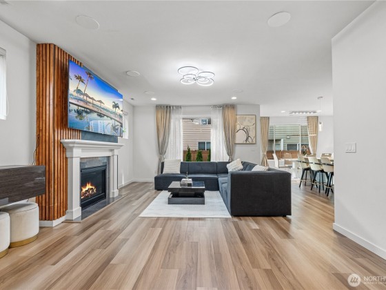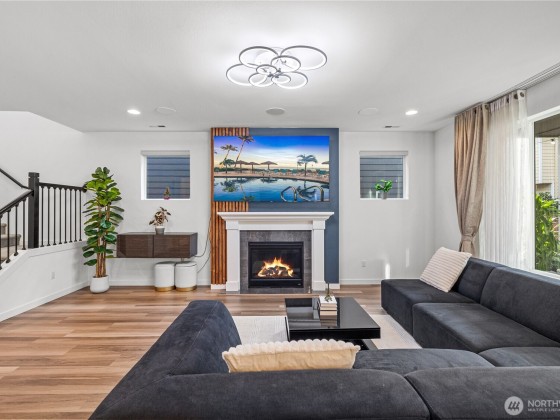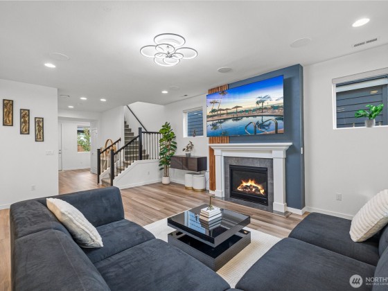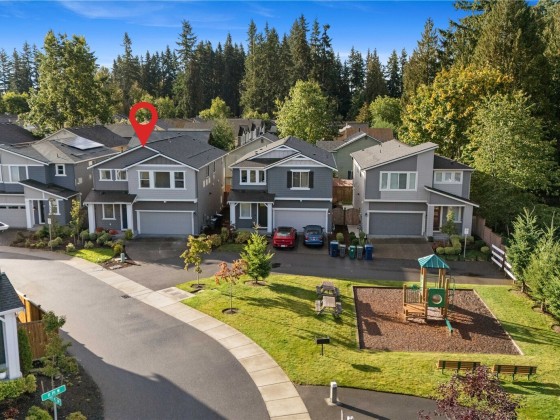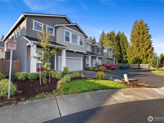 Experience modern living in this beautifully upgraded north facing home! Featuring 3 beds, 2.5 baths, an airy open floor plan, and a versatile loft that can serve as a family room, office, or 4th bedroom. The chef’s kitchen shines with a large island, tile backsplash & stainless appliances. The primary suite is a retreat with walk-in closet, accent wall & spa-style shower with bench. Smart switches, in-ceiling speakers, modern railings, upgraded carpet, designer lighting, central A/C & a tankless water heater. Low-maintenance yard with premium turf, covered patio, and a playground across the street. EV Charger included. 2-car garage with ceiling storage. Close to parks, trails, shopping, Ash Way Park & Ride, Light Rail & I-5/405.