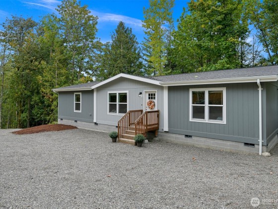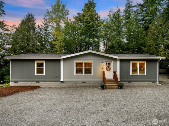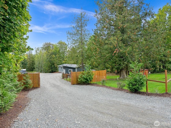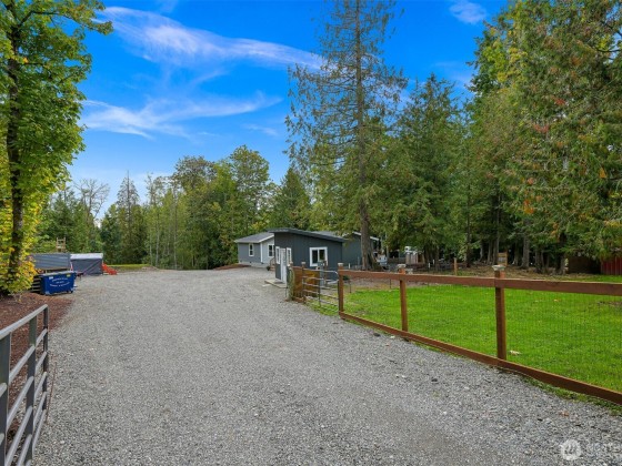 Welcome to your private retreat on 5 acres in Blaine! This 2024 built 3-bedroom, 2-bath home showcases vaulted ceilings, open concept living & a spacious kitchen island. The primary suite offers a dual-sink bath & walk-in closet. Gated entry provides privacy & security, with the property fully fenced & cross-fenced for animals. A critter building for goats, chickens, cows or more plus a pond, garden area & pump house shed/workspace complete the setting. Ample space for RV parking, future shop or ADU. Enjoy country living just minutes from the border & a short drive to Bellingham.