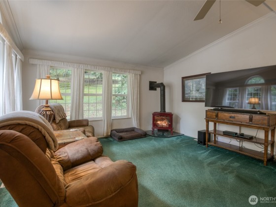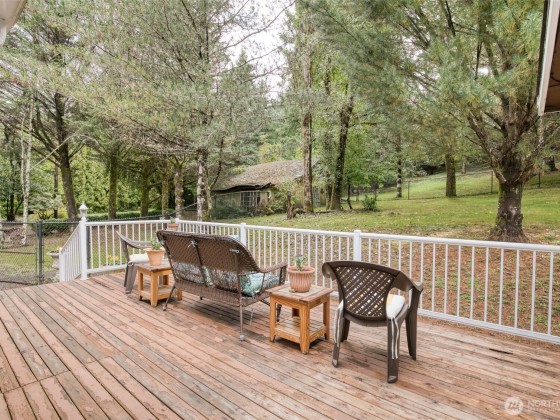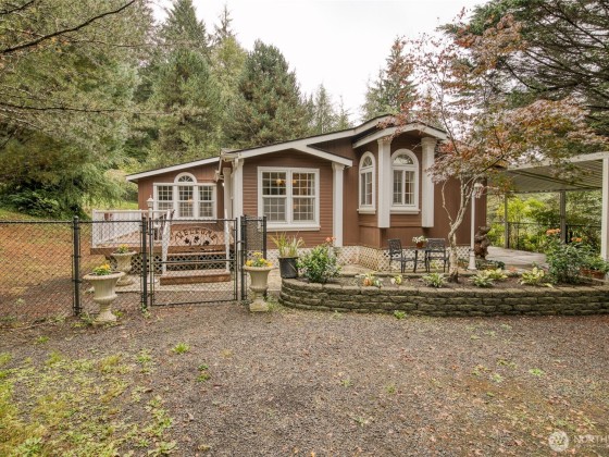 Wishkah Valley, roomy 3 bedroom/2 bath triple-wide manufactured home with beautiful landscaped yard. Propane free standing stove in the livingroom. Large primary bedroom has a shower plus soaking tub and huge walk in closet. Separate, detached 2 bedroom home has only been used for storage. Vintage garage has also been used for storage. Approximatley 1 acre has been fenced.