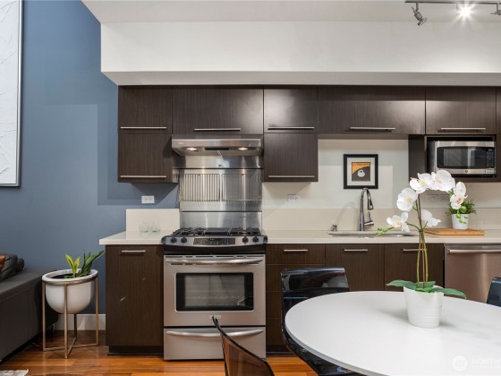 New price! Great location when you live at The Gallery! Amazing, turnkey primary bedroom + non-conforming 2nd bedroom pied-a-terre situated at the north end of Belltown and Lower Queen Anne. This large, open concept live/work loft end unit features over 1,100 sqft, 18-foot ceilings with floor to ceiling glass. On the loft level you will find a large bedroom, walk-in closet and large en-suite bath. The main level features a great room, chef's kitchen with stainless steel appliances including gas range. The versatile 2nd allows for work and could accomodate a murphy bed as well for guests and half bath. Secure parking space in garage and storage. Amenities are top rated: 24/7 concierge, owner lounge, business center, rooftop terrace and more!