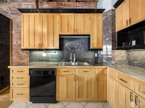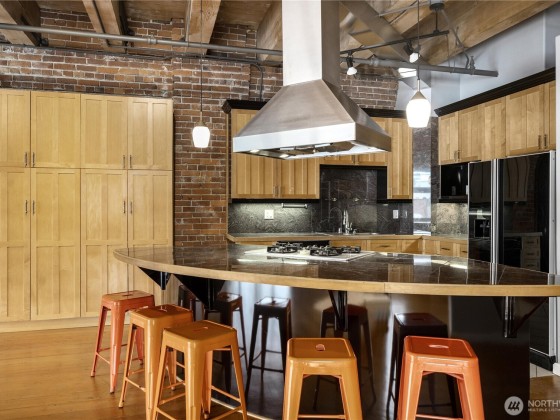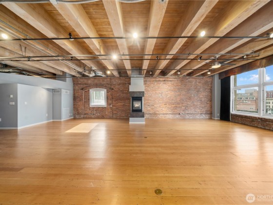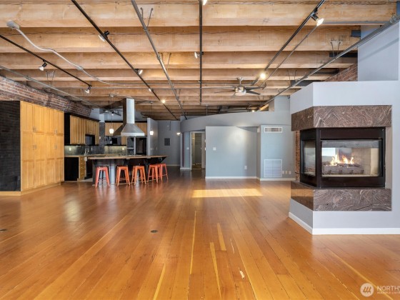 Price Improvement! Located in the heart of Pioneer Square. Seattle's rare authentic warehouse loft building. Live/work loft filled with security and comfort. Dramatic high,beamed ceilings, red brick walls, wood plank flooring, and a wall of windows. This is a open airy floorplan with kitchen worthy of an Iron Chef w/granite command center island. Master suite w/walk in closet, brand new updated tiled bathroom with walk in shower. Deeded garage parking, a rarity in Seattle complete with storage unit. West facing. Zoning permits exclusive office and/or residential use. Rooftop deck that you can see to the Sound. Many transit options right out your front door.