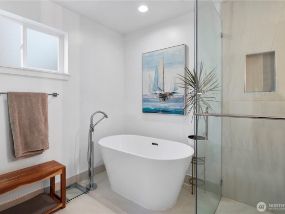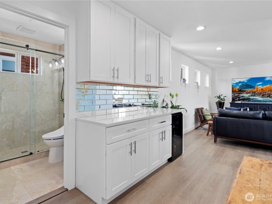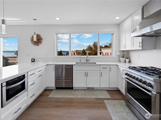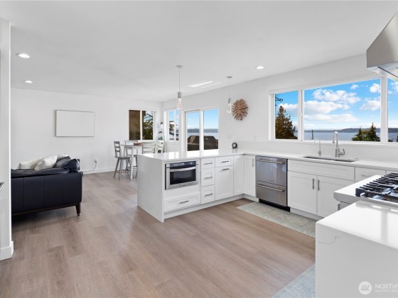 Modern Elegance Meets Timeless Views from this beautifully remodeled Richmond Beach home. Thoughtful upgrades include a dream kitchen w/ quartz waterfall counters, slab backsplash, Fisher & Paykel appliances, butler’s pantry & beverage fridge. Spa-inspired baths feature custom tile, heated mirrors, & a luxe primary en-suite w/ freestanding tub. Throughout the home: new LVP floors, paint, trim, recessed lighting, remote blinds, & expanded fireplace. Comfort upgrades: central AC, new water heater, updated electrical; all add peace of mind. With generous windows framing ferries, Orcas & mountains, & a fabulous community, parks, & top-rated Syre & Einstein schools, this home is a rare blend of style, comfort & setting! Pre-inspected.