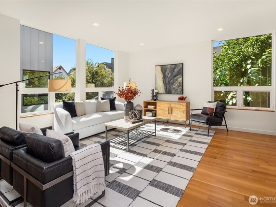 From esteemed local builder, Peeler Construction, comes this stunning new home. From site-finished hardwood floors to wood-capped window sills, no detail is overlooked. In addition to the convenient garage, main floor hosts bedroom and full bath. Upstairs you'll find a spacious open concept living space and dining area. Top level offers flexibility with oversized primary with expansive walk-in closet plus additional bed and full bath. Large rooftop deck is a serene oasis perfect for a low maintenance outdoor escape. Situated moments from downtown Ballard with the vibrant culture of local breweries, the Ballard Farmer's Market & the Shilshole waterfront.