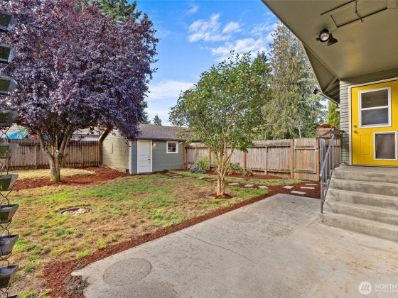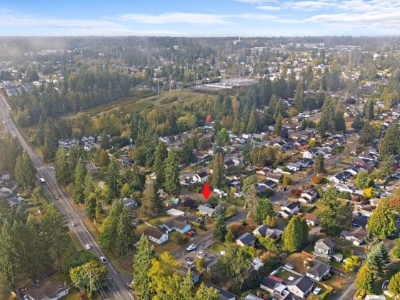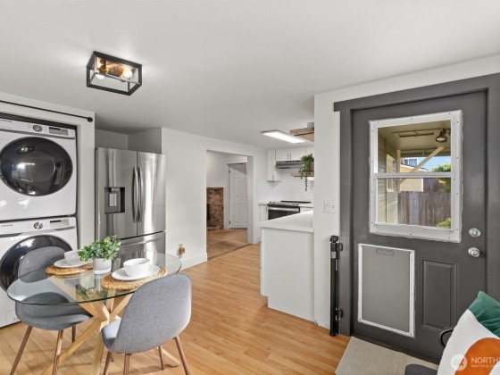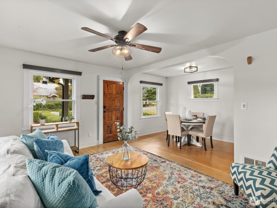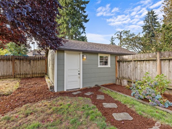 Step into Everett history with this 1922 Craftsman, once near Everett Mall and relocated to Pinehurst. Original fir floors, moldings, and baseboards remain, blended with modern updates. Renovated kitchen features quartz countertops, stainless appliances, and subway tile backsplash. Timeless black-and-white bathroom adds charm. Originally two bedrooms, now a spacious one-bedroom with two dining areas and two living spaces—but can easily be restored to two bedrooms. Fenced backyard, corner lot, detached garage, and cellar with side entry complete the picture. {INVESTOR ALERT!} Possibly Live / Rent in Main & Build 2 more structures in back! NEW roof & gutters, 2023; electrical, 2024; propane & water heater, 2020; kitchen+ fresh paint 2025.