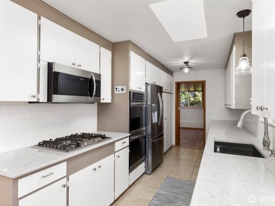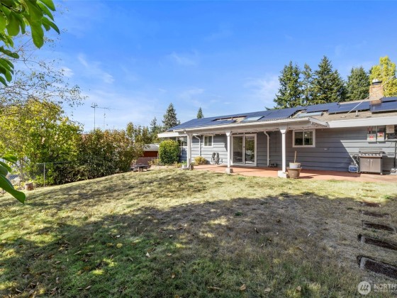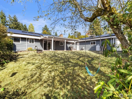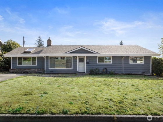 Enjoy the convenience of single-level living in this spacious mid-century rambler! Offering 3 bedrooms and 2 baths, this home features a large living room with gas fireplace, plus an addional generously sized family room with a fun reading loft. Kitchen has been remodeled and features a gas cooktop, double ovens, and painted cabinets. Updates include new windows, lighting, and flooring in several rooms. Solar panels provide energy efficiency with bills averaging only $8/month. Primary suite offers a private 3/4 bath, and the utility room conveniently connects the family space to the attached garage. Large yard with peek-a-boo Olympic views. Close to shopping, parks, Library, Bremerton Ferry, PSNS, and Naval Base Kitsap. Pre-inspected!