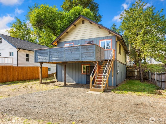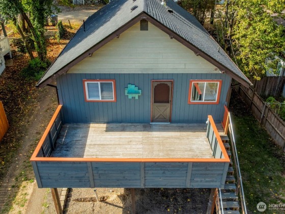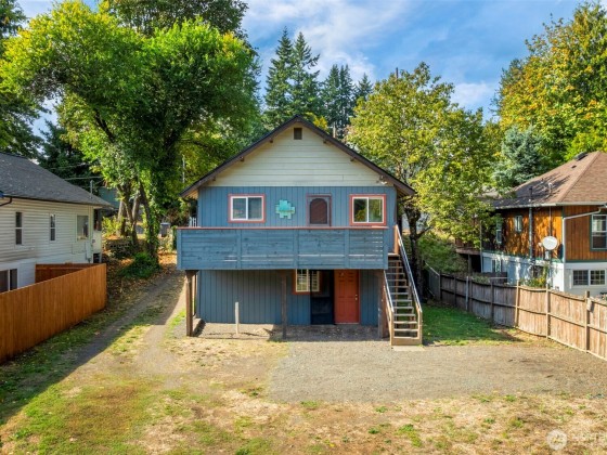 First time home buyer or investor, this one's for you! Adorable ready to go 2 BR bungalow with huge investment potential. Darling covered porch entry. Charming living space w/ cozy wood stove & rustic accents. Bright & cheery kitchen, spacious layout, butcher block counters & SS appliances. Large sunny deck off kitchen w/ stairs to big backyard area. Ample bedrooms flanking updated 3/4 bath. Vinyl windows. New roof & gutters. Huge ready to finish 850+ sf basement crawlspace w/ separate access door. Neighboring homes have really maximized their value by doing the same finish work. Enormous parking area with front to back drive thru access to Loxie Eagan's Blvd. Urban Low zoning allows you to permit & finish this as a DUPLEX or build ADU.