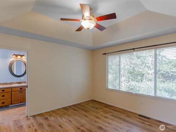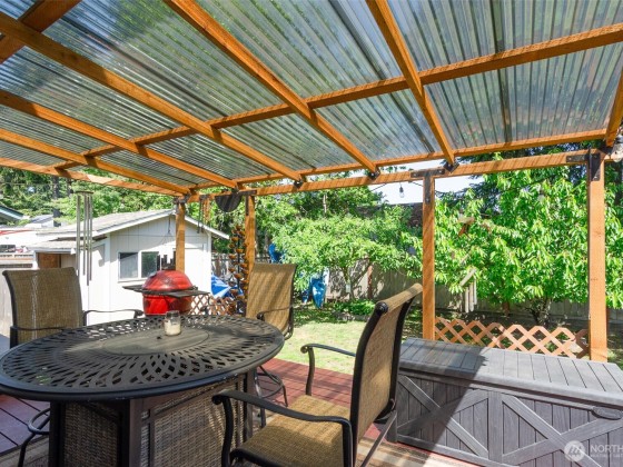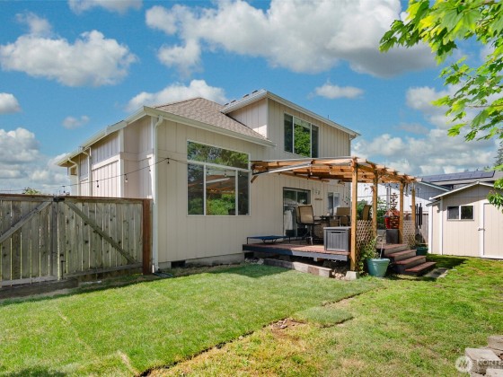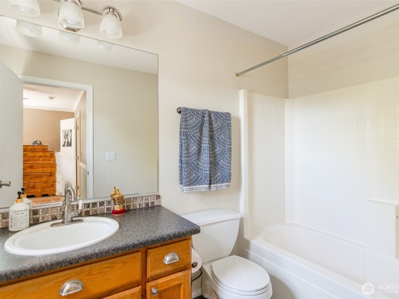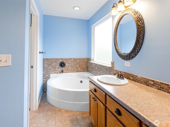 Desirable corner-lot 2-story in Lacey with a brand-new roof and transferrable warranty! This modern home offers a flexible main-floor bedroom with adjacent ¾ bath—ideal for guests or multi-gen living. The vaulted great room features a cozy gas fireplace, laminate floors, and access to a spacious covered deck with a hot tub—perfect for year-round relaxation. The kitchen shines with tile counters, full-height backsplash, tile floors, downdraft range, and eating bar. Upstairs offers two spacious primary suites with walk-in closets and private baths—one with a luxurious 5-piece ensuite. Newer vinyl plank upstairs, plus kitchen appliances and washer/dryer included. Close to parks, schools, and shopping!