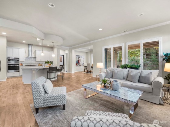 Experience upscale living in Trilogy at Tehaleh’s premier 55+ resort community. This desirable Genova floor plan offers style and comfort just steps from Seven Summits Lodge, featuring a pool, fitness center, pickleball, restaurant, and bar. The private backyard is low-maintenance, while the HOA cares for the front and side yards, leaving you more time to relax and enjoy. A fully finished oversized garage adds valuable convenience and storage. Explore 30+ miles of scenic trails from your front door and immerse yourself in a vibrant community where wellness, adventure, and social connection are part of everyday life. This home is more than a residence—it’s an invitation to live your best life in Trilogy, where luxury meets community.
