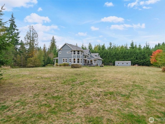 Stunning 3,642 sq ft Craftsman-style home on just shy of 22 acres in gated McKenna Forest Reserve, a 4,400-acre community divided into six neighborhoods, including Jackson Forest. Sunlight fills vaulted ceilings and spacious living areas. Dual primary suites: primary with sitting area and jetted tub, main-floor junior suite with walk-in shower and accessible bath. Main-floor office, upper-level guest room, and bonus room. Kitchen with stainless appliances, walk-in pantry, and eating bar; dining area with backyard views. Forest/mountain views, 3-car garage, two powered shops, built-in vacuum, tankless water heater, Central AC, fruit trees, pond, deck, ATV/horse trails, lake access. Community offers boat launch, park, and playground.