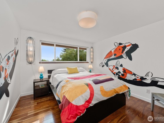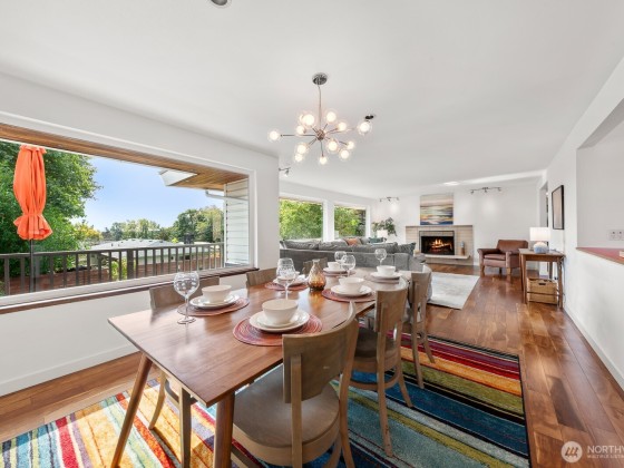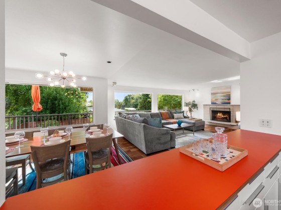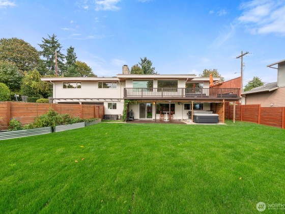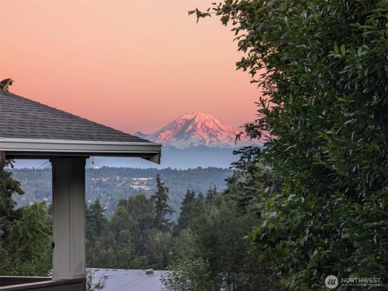 View. Refinement. Space. Design. A circle drive welcomes you to an impeccable midcentury modern, where every choice was well considered for easy entertaining, or relaxing. Connected living spaces flow elegantly from the upstairs living, dining, kitchen, and wrap around terrace, to the downstairs media and game room leading to the covered patio and hot tub. The Rainier view will take your breath. Every bedroom on the main floor is in the private wing and accommodates a king bed. The primary has a wall of closets and an en-suite bath that delights. The fully fenced yard is expansive with raised gardens. It's extraordinary. Thoughtfully remodeled from end to end including central A/C. It rings true, they just don't make 'em like they used to.