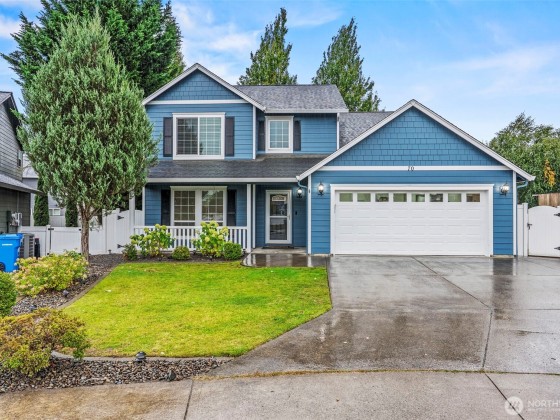 Come see this 2,156 sq ft, 4bd 2.5ba home situated on a cul-de-sac. Home is in a very desirable location near I-5 and many amenities. Home was built in 2005 and features, SS appliances, Granite counters, custom cabinetry, spacious floor plan, large primary en-suite, jetted tub, and built in TV system in the LV Room. Newer upgrades include flooring and paints. Outside you will enjoy a low maintenance landscape with the luxury of a fully fenced back yard with an additional dog run. Also a large back patio perfect for entertaining. This house is dialed in with some custom features and is very clean.