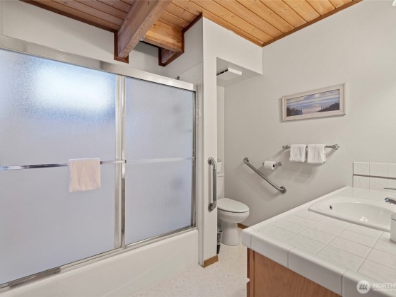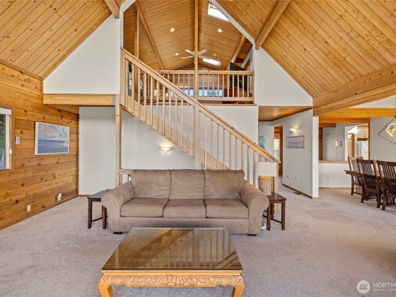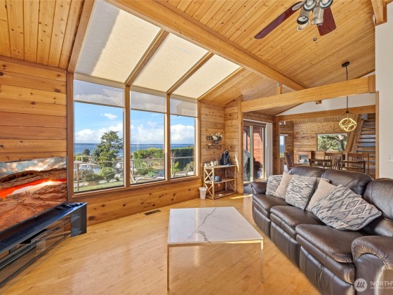 Looking for panoramic westside views of the shipping channel and Olympic Mountains? You’ll find them here in this stunning Lindal Cedar Home. Soaring prow windows & vaulted ceilings showcase the scenery with 180-degree views, while the spacious loft master suite offers a private retreat in additional to a bedroom on the main-floor. The lower level provides a versatile bonus/rec room plus an additional office, den, or sleeping area. Entertain with ease from the large open kitchen, relax on the expansive view deck, or soak in the hot tub while taking in the breathtaking surroundings. Upgrades include a new roof ('22), home was re-piped ('22), heat pump ('23), & a Kinetico Water Softener/Filter (2019). This is island living at its finest!