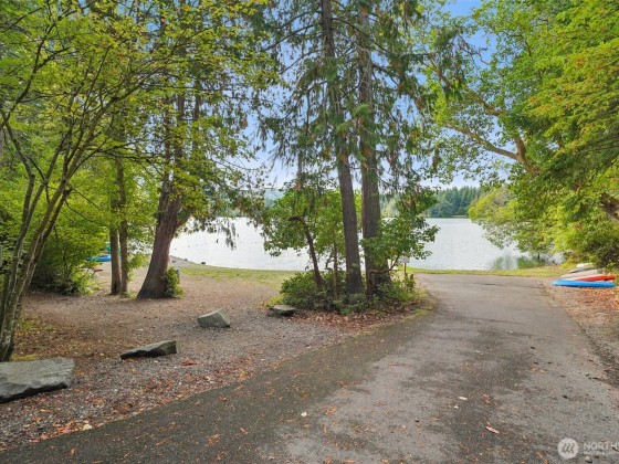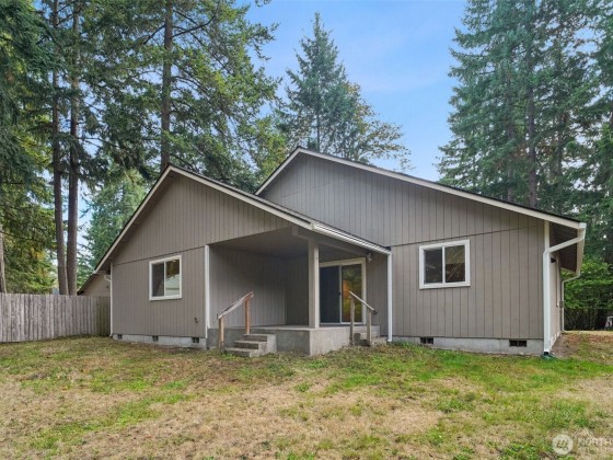 Welcome to this beautifully maintained rambler located in the gated Clearwood Community. Enjoy access to 3 lakes, boat launch, pool, hot tub, sport courts, trails & playgrounds. Walk 2 minutes directly from your back yard to the beach for SUP & fishing. This single story home welcomes you with soaring vaulted ceilings & private views out each window. The open-concept layout connects the kitchen, dining, & 2 living room areas, creating a welcoming space for gatherings. Step out back on the large covered patio where your backyard faces serene greenbelt views. Enjoy a 2-car garage, central A/C, newer water heater, leaf guard gutters, & a newer roof. Experience living with resort-like amenities with a short commute to JBLM, Tacoma and Olympia.