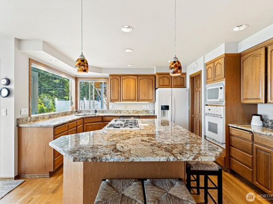 Breathtaking, panoramic views of mountains, sound & shipping lanes. Perfect for hosting on the expansive deck or cozying up by the fireplace, this home is made for year-round enjoyment. Primary suite is a serene retreat with a generous ensuite & incredible view. Additional bedrooms & bonus room offer space for everyone. A spacious 2-car garage plus a detached shop/studio provide room for extra parking, hobbies, or storage. Located just mins from the Eglon boat launch, downtown Kingston & ferries, this home is equal parts peaceful retreat and convenience. Homes with views like this are rare, come make it yours!