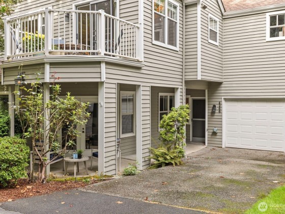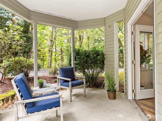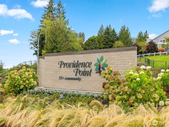Welcome to your serene retreat for 55+ in the heart of Providence Point! This charming lower-level condo is tucked away on a quiet cul-de-sac & offers the perfect blend of comfort & convenience. Step out from your living room through elegant French doors onto a covered patio w/peaceful forest views—an ideal spot for morning coffee, gardening, or relaxing with pets. Inside, the kitchen shines w/quartz countertops, updated hardware & all brand-new SS appliances. The dining & living area is warm & inviting, featuring a cozy wood-burning fireplace for those crisp Northwest evenings. The spacious primary suite includes a walk-in closet & an updated bath w/convenient in-unit washer & dryer. Come discover the lifestyle you’ve been looking for!