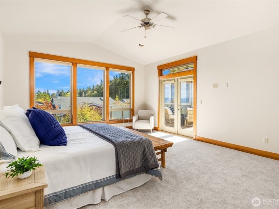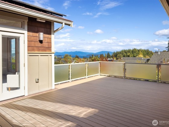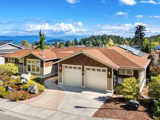 Sweeping bay and mountain views define this custom-built home, designed for one-level living. A rare unfinished high-ceiling basement offers endless potential for expansion. The private detached casita (ADU) provides flexible space for guests, live-in help, (or rental income?). Main floor highlights include a vaulted great room with open concept design, office/den with custom Murphy bed, and a separate family/TV room with fireplace and French doors. Deck accessible from great room, office and primary bedroom. Recent updates: refinished hardwoods, new carpet, fresh interior paint, and brand-new decking. Mature, low-maintenance landscaping with close access to community trailheads. Move-in Ready!