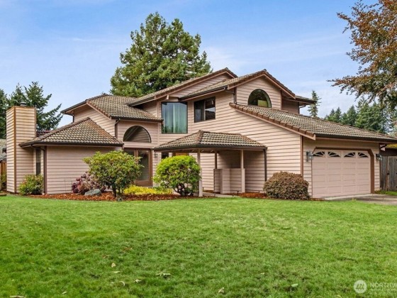 This 2-story home with 3 bedrooms sits perfectly on one of the largest corner lots in the neighborhood with ¼ acre. Large front yard & covered back deck is perfect for relaxing & gardening. Grand entry w/ 2-story foyer flooded w/natural light on rich oak hardwood floors throughout the main floor. Large kitchen w/ granite counters, Stainless steel appliances, oak cabinets & eating bar. 2 separate living rooms & primary bedroom w/ attached 5-piece suite w/ soaking tub & walk in closet. 2 Skylights bring in lots of natural light & all appliances included. Energy efficient gas forced air heat & gas hot water heater. 2 car garage & Long-Life tile roof. Conveniently located minutes from Hawks Prairie golf course, restaurants, grocery store & JBLM