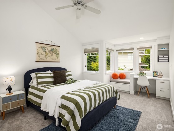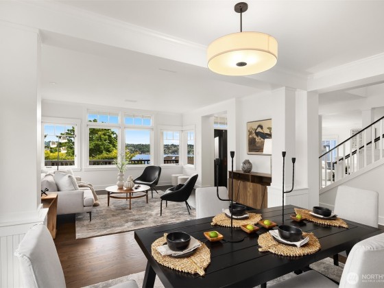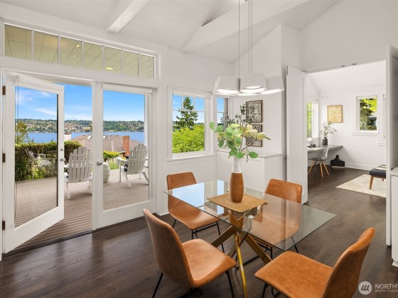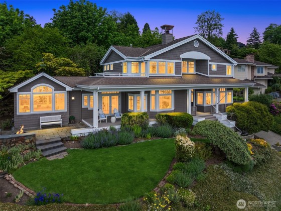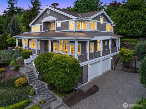 Views! Views! Views! Built in 1997, but lovingly remodeled, this elegant classic has it all. The 4 bed/3 bath, 3,690 sq ft Peter Stoner designed home sits on a 19,793 sq ft lot. A timeless design greets you as you enter, but you’ll be awed by the views of Lake Washington and Mt. Rainier from both floors. Bathed in light from its western exposure, the main floor is an open floor plan with chef’s kitchen, family room, living room, formal and casual dining, and guest bedroom. The large home office on the main floor has such phenomenal views it will be tough to get any work done! Upstairs sits the master bedroom, two more bedrooms, and a play room w/loft (could be a 5th bedroom). 2 car garage & tons of storage. Come see to believe!