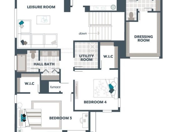 The Indigo V5 by MainVue Homes at Eaglemont is a basement home design with all-season allure. At the entrance, the Home Office is set away from main living areas for private work or study. Down the Foyer, enter the Great Room where an abundance of natural light flows via wall-height sliding glad doors that open into the Signature Outdoor Room. In the Gourmet Kitchen enjoy 3cm Quartz countertops, KitchenAid appliances and a Butler's Pantry with a unique window splashback and direct access to the Garage. Downstairs find a Recreation Room, Storage and Covered Patio. Upstairs find three secondary bedrooms, Leisure Room and luxurious Grand Suite with expansive walk-in Dressing Room, a frameless walk-in shower and designer free-standing tub.