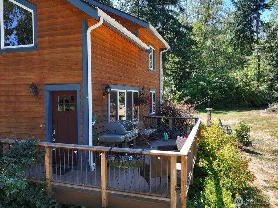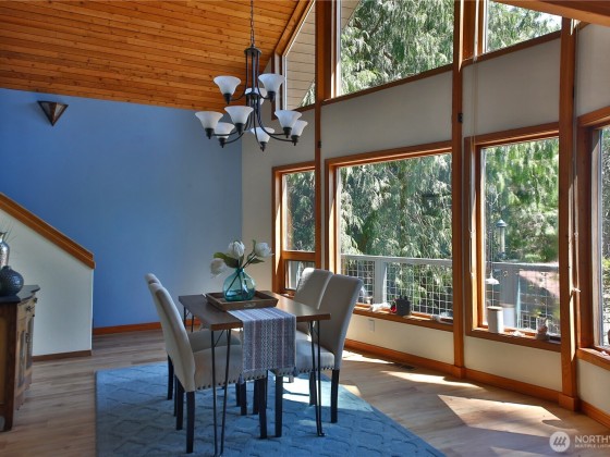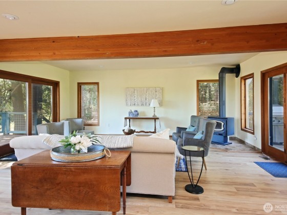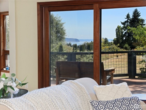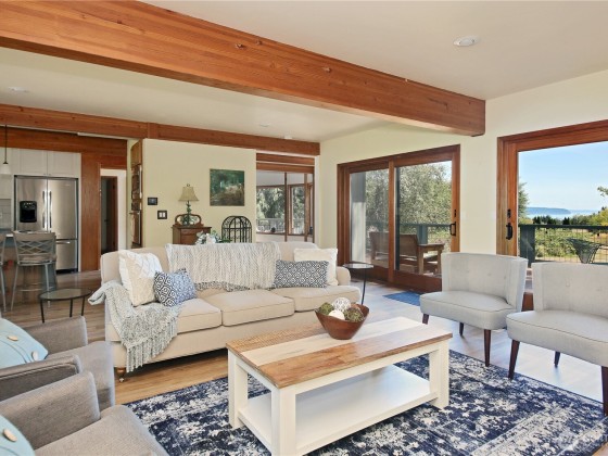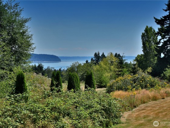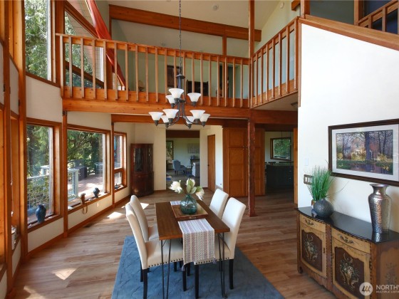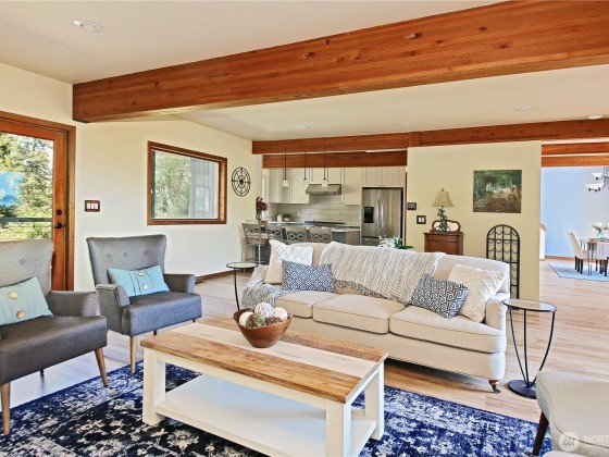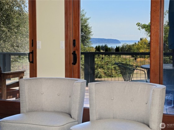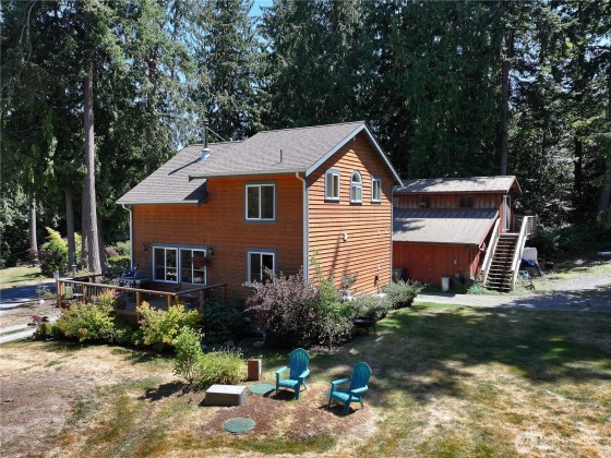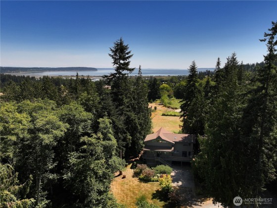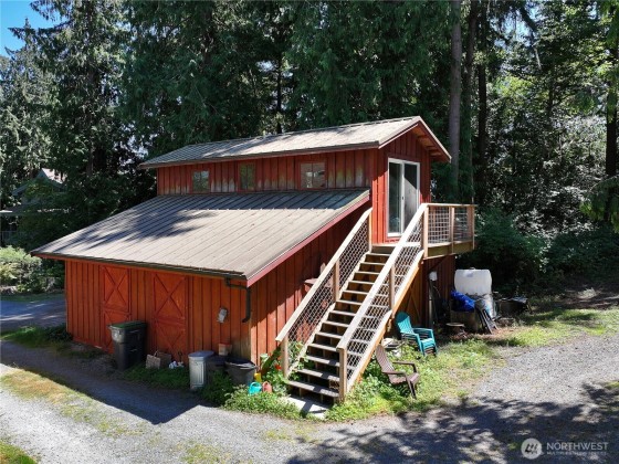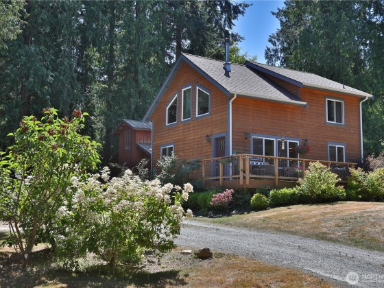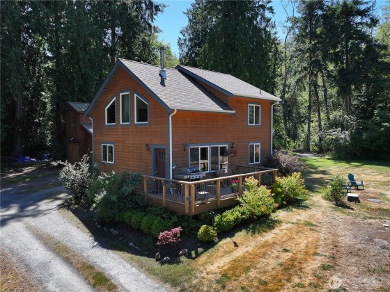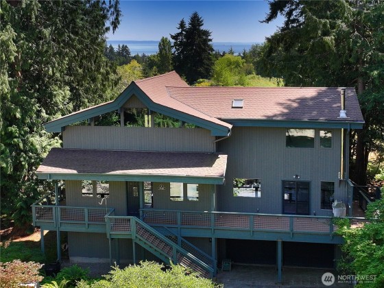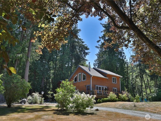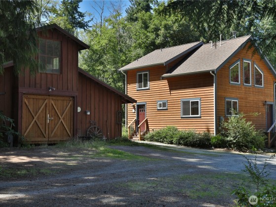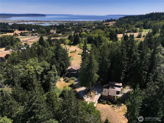 Two separate beautiful homes set on a stunning Whidbey Property close to Double Bluff Beach. Short term rent one, live in the other. The main home, a Contemporary Lindal Cedar home, Mt. Rainier & City views from every window & true wrap around deck. The spacious main floor boasts a tastefully renovated kitchen, floor to ceiling windows, great room w/ wood stove, dining area w/vaulted ceilings & an office. Upstairs is a master suite, 2 bedrooms, + flex area. A separate suite below with full bath & private entrance. The Cottage, A 2018 built 3 bedroom, 2 bath, 1000+/-sf custom DADU is placed in the sun next to the custom 2 stall barn w/ loft. Mature cedars, orchards, trails, all placed thoughtfully on the beautifully wooded acres 5 ± acres.