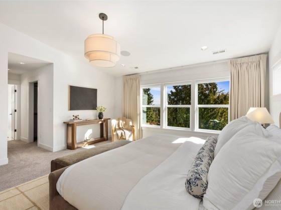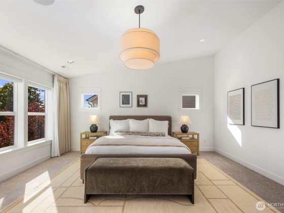 Eastern exposure fills this home with natural light & captures stunning sunrises over The Cascades and Mt. Rainier. The main floor features an open floor plan with gourmet kitchen, walk-in pantry and living room opening up to a spacious deck, plus a bonus room ideal for an office or playroom. Upstairs you’ll find three bedrooms on one level, including a primary suite with dual walk-in closets & spa bath. The lower level offers a rec room, guest suite, & covered patio for staying dry while enjoying the large backyard. Rare oversized 2-car garage with EV charging and storage. Built in speakers, central AC, & Lutron lighting system with smart-home features allow you to effortlessly control the temperature, lighting, & sound from anywhere.