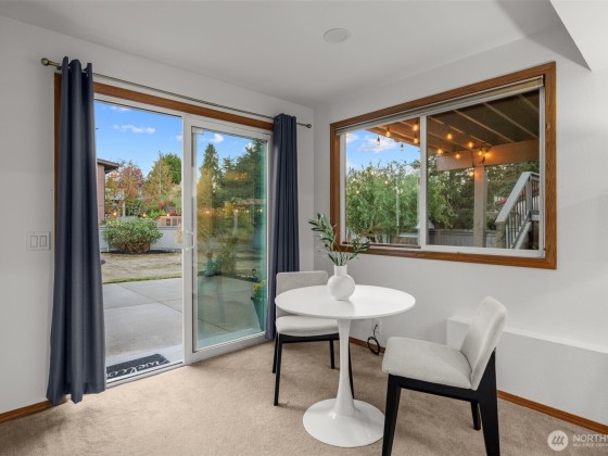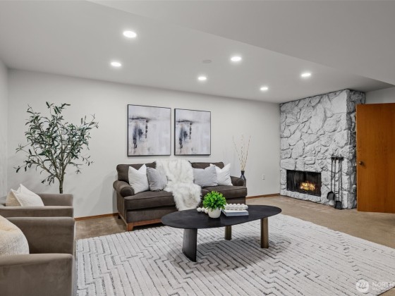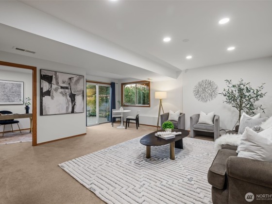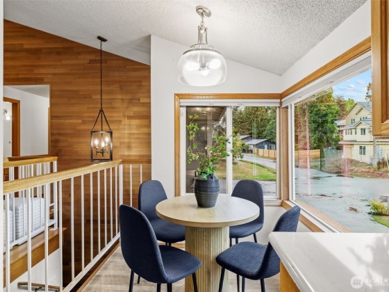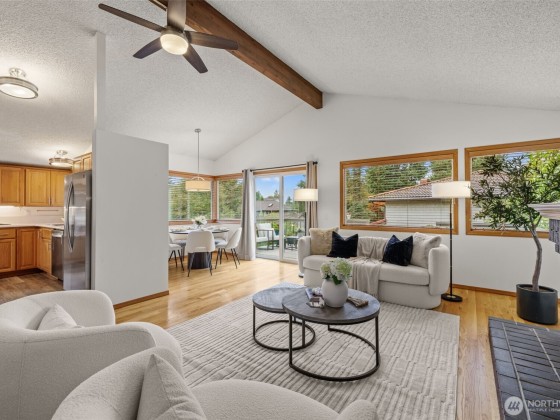 Located in coveted North Beach! This lovingly maintained home features an open layout w/ vaulted ceilings + exposed beams! Offering 3 bedrooms on the main floor & 4th bedroom located on the lower level. Spacious living & dining room area + wood burning fireplace! Kitchen includes eat-in nook surrounded by open light-filled windows open up to a large deck! Lower level welcomes a spacious bonus living room area + additional fireplace. Downstairs opens to a private large patio surrounded by mature landscaping, ideal to entertain large gatherings! Expansive lot w/ huge yard & driveway! Same owners for 45 years! This timeless beauty is a must see and is centrally located near Golden Gardens, coffee shops + the most amazing parks!