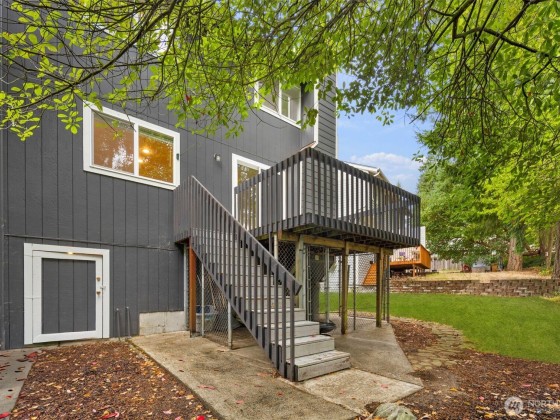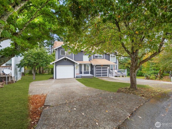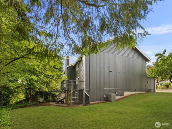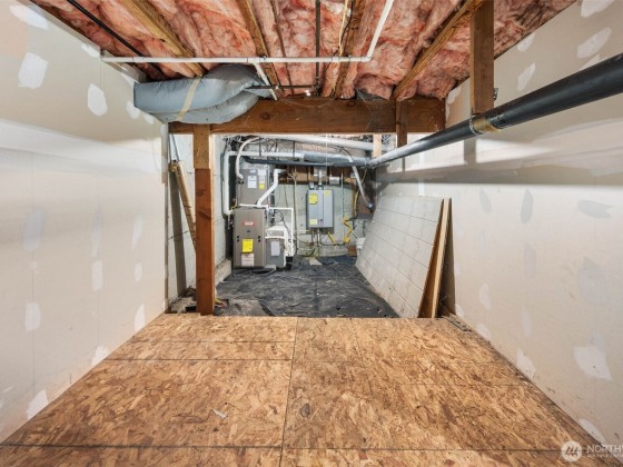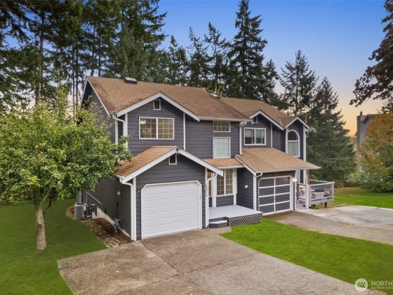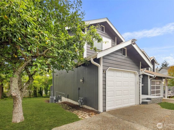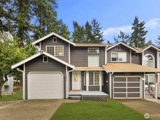 Silverdale Townhome with Bonus 645 SF Climate-Controlled Crawl Space Near Island Lake Park. Enter through the front deck into your living room featuring vaulted ceilings and three levels of windows flooding the space with natural light. The spacious kitchen has an eat-in island, while the versatile second living area with fireplace opens to a back deck. Main level includes laundry, half bath, and access to a 1-car garage with deep freezer. Upstairs, discover three bedrooms including a primary suite with dual closets and private bathroom with a stand-up shower. Outside offers a partially fenced yard, apple tree, gated under-deck storage, and incredible 71" height, approximately 645 sq ft of unfinished crawl space - ideal for storage.