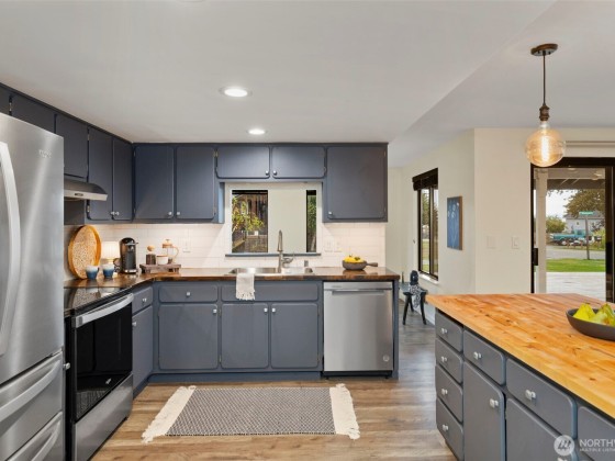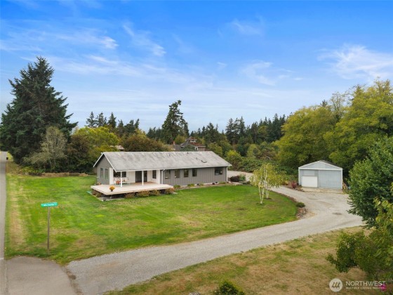 Welcome to this inviting 3-bedroom, 1.75-bath home offering 1,708 sq ft of comfortable main-level living on a .58-acre lot in Kingston’s desirable Jefferson Point neighborhood. From the living room and expansive front deck, take in partial water views of Puget Sound and Mt. Baker, creating a serene retreat right at home. Inside, you’ll find new flooring throughout, a beautifully updated primary bathroom, and stainless steel appliances. The thoughtful layout provides ease and convenience with all living spaces on one level. A large detached shop offers endless potential for hobbies, storage, or workspace. With its blend of updates, generous outdoor space, and stunning views, this home is one you won’t want to miss!