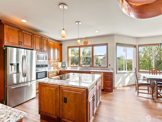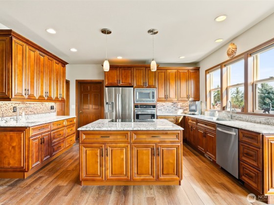 Experience luxury in this stunning 4 bed, 3.5 bath Ellensburg home, spanning over 4000 sq ft in the prime Radio Hill neighborhood near CWU. Enter through a grand marble foyer into a gourmet kitchen with premium upgrades and dual pantries. Relax in the expansive primary suite with a lavish bathroom and soaking tub. A convenient laundry sits near 3 bedrooms. The finished walkout basement, ideal for entertaining, features a private bedroom, spacious living and dining areas, a full kitchen, and a full bath blending elegance and functionality. RV hookup and a heated garage with beautifully landscaped grounds elevate this exquisite property, blending sophistication with practicality for an unparalleled lifestyle.
