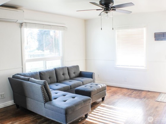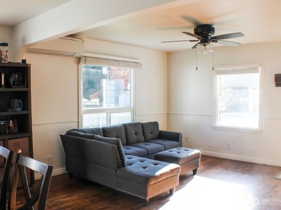 This 3 Bed + BONUS Room, 2 Bath home blends charm with function across a spacious, well-laid-out floor plan. Inside, you'll find a cozy, stylish kitchen and a large laundry/utility room for added convenience. A modern ductless mini-split ensures year-round comfort. Out back, a detached garage offers extra storage or workspace potential. The home is protected by durable fiber cement siding. The yard is perfect for any occasion, with plenty of space for activities, gatherings, or a unique garden. Located just minutes from Olympic College, local schools, the ferry terminal, and the shipyard, this home combines comfort and accessibility in a convenient location.