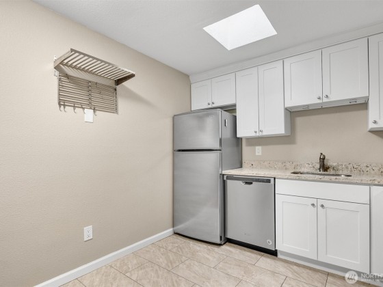 Tucked in a peaceful community near Lake Washington, this charming 1-bedroom, 1-bath condo offers rare privacy with no neighbors above or below. The refreshed kitchen is filled with morning light from a skylight, while soaring cathedral ceilings create a bright, open living space. Relax or entertain on your private patio, framed by a stunning Japanese maple. A built-in bathroom speaker adds a spa-like touch, and the convenience of an in-unit washer and dryer enhances daily living. Nearby, enjoy easy access to a gym, grocery, and local amenities. With spacious interiors, thoughtful updates, and a serene setting, this home is the perfect retreat for first-time buyers or those looking to downsize in comfort.