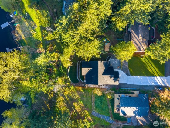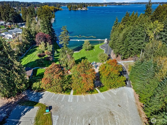 $37,600 RATE BUYDOWN !!! Custom built waterfront home in quiet, woodland setting on Hidden Lake. Quality materials used throughout this well designed home is built to last. 3 Beds + Ofc. 10 ft high ceilings w/ 8 ft drs, & 30-yr waterproof engineered flr. Sliding glass drs lead out to 2 low maint Trex decks w/waterproof pine ceilings, extending living space. High-end SS kitch apps w/large European Dekton island. Gas fireplace is wrapped in Dekton too. HOA access to 3 private parks on Lake Tapps w/fun dog park & boat launch. Downstairs is perfect for movie nights or multi-gen living w/2nd full kitch. Self-maint Kohler generator & AC. This home is a perfect blend of activities & relaxation.