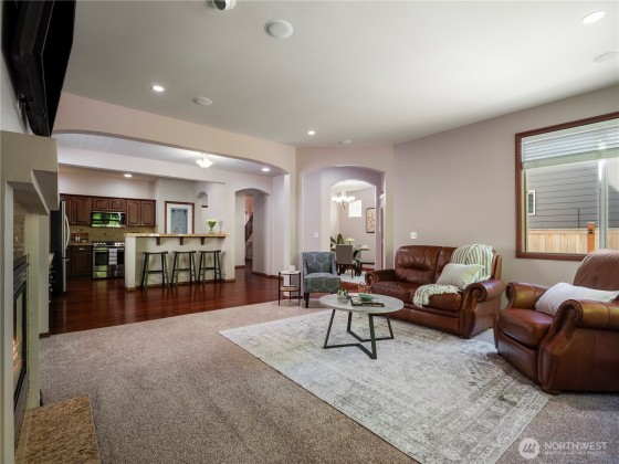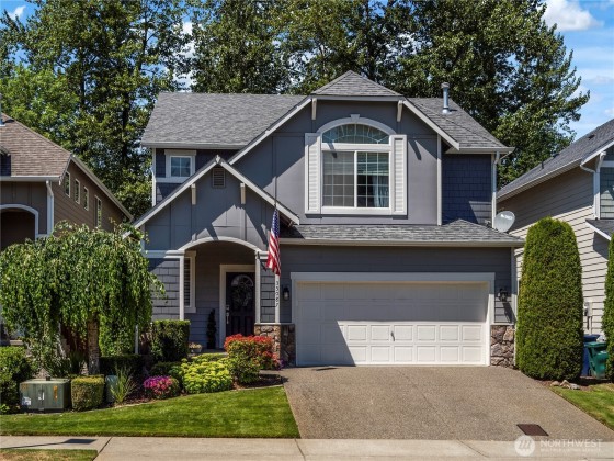 Nestled near scenic Lake Geneva and just steps from a community park & playground, this 4-bedroom, 2.5-bath home offers 2,308 sq ft of thoughtfully designed living space, featuring an open and spacious main floor w/hardwood flooring, a great room with cozy gas fireplace, custom-built bookshelves, and kitchen w/eating nook, breakfast bar & pantry. The dining room is a nice flexible space that could be your new office or music room. The primary suite is a true retreat with vaulted ceilings, 5-piece spa-like bath, & walk-in closet. Create your happy space in the private backyard, showcasing peaceful territorial views. Additional highlights include upper-level laundry, new furnace & AC, sprinklers front & back, and easy access to I-5 & HWY 167.