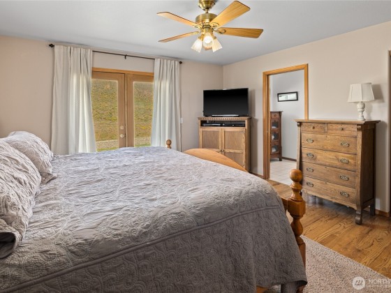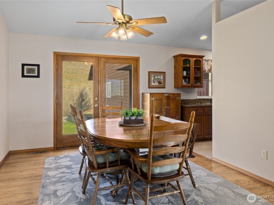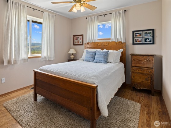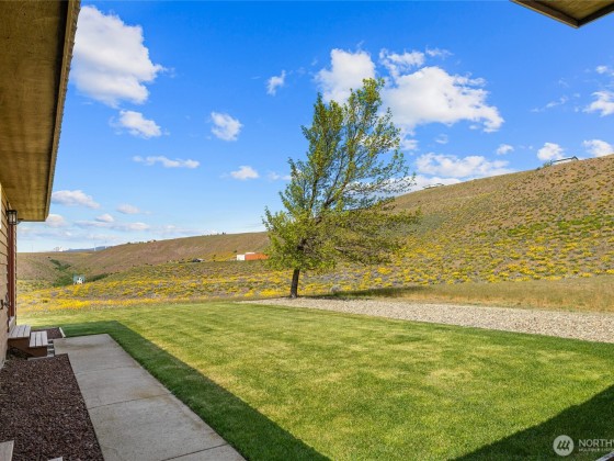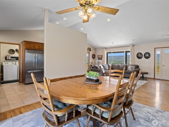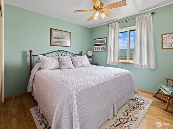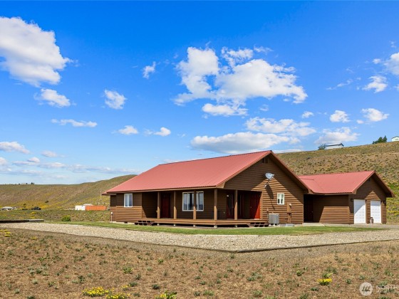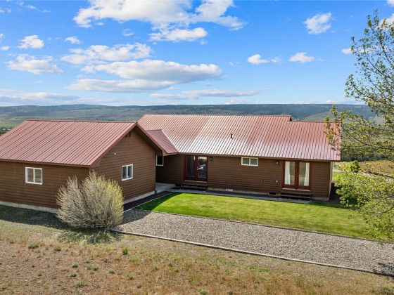 A truly exceptional property perched on a 50-acre private plateau,offering sweeping views of the valley and surrounding mountains.Inside, you'll find warm oak hardwood and tile flooring,an efficient kitchen with hard-surface countertops and custom tile backsplash,dining room that opens to the outdoors through French doors.The vaulted living area features windows that frame the landscape.The primary suite boasts an updated bathroom with a walk-in tiled shower and dual vanities with hard-surface countertops. A finished 24' x 24' two-car garage is heated.Outside,the lawns are maintained effortlessly with a sprinkler system.Relax under the covered porches and take in the ever-changing vistas that stretch as far as the eye can see.
