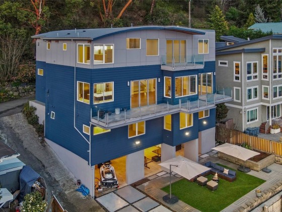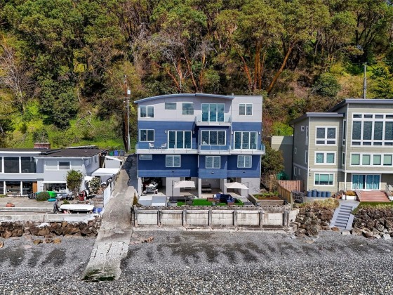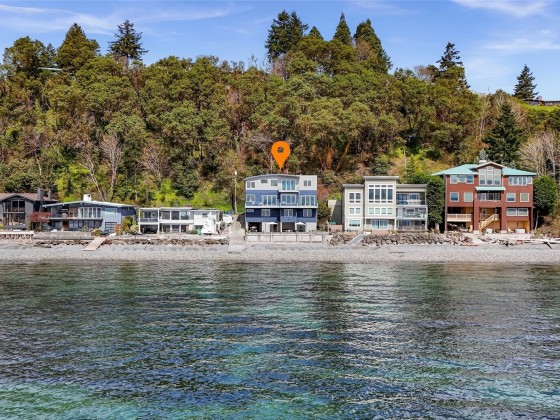 Discover unparalleled luxury in this stunning 2019 waterfront masterpiece in exclusive Shorewood on the Sound. This magnificent gated estate boasts 62 feet of pristine low-bank shoreline with boat ramp and breathtaking Puget Sound vistas. Seamlessly blending sophisticated indoor-outdoor living via NanaWall systems, the open design showcases a chef's kitchen with premium Bluestar range, dual dishwashers, and double sinks. Luxurious amenities include heated bathroom floors, soundproofed bedrooms/office, individual climate controls, and elevator-ready design. The extended-height garage accommodates two cars with EV charging, plus 2,000+ sq ft storage. Experience refined coastal elegance in this rare 12-home enclave.