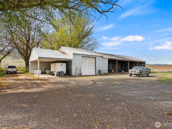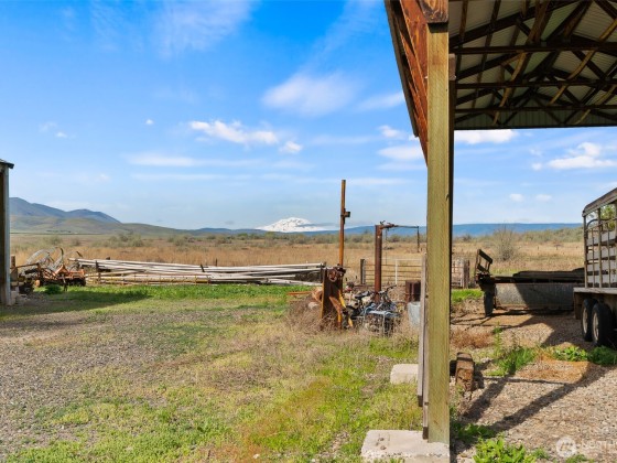 55 acres with stunning views of Mt. Adams. Property borders a wildlife refuge and trust land. It has been fenced and cross fenced. The land was meticulously replanted with now mature native plants, which require little to no maintenance or irrigation. It supports numerous plant and animal species that were previously absent. The property boast an 1800+ sq ft double wide manufactured home and several outbuildings including a garden room, shop, machine shed, 2 hay sheds, greenhouse, chicken coop w/pen on skids, barn, tack room, storage outbuilding, 5-stall calving shed, and various farm related equipment is all included. Adjoining 64 acres also available.