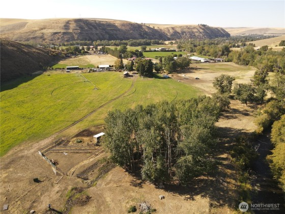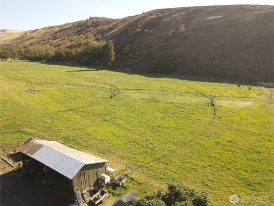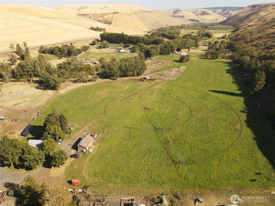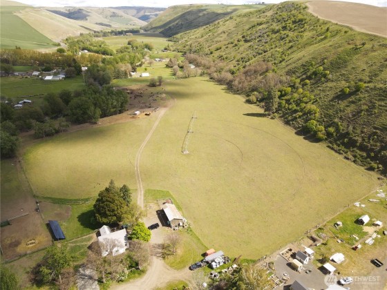 Seize the opportunity to own a fully functioning farming operation on this expansive property, boasting a high-performance 3/4 circle pivot irrigation system and wheel-lines nurturing 12 acres of flourishing grass hayfields, accompanied by essential infrastructure including a convenient calving shed and a spacious 21'x42' machine shed, fully fenced boundaries ensure privacy and security, while hillside pastures offer grazing for livestock all within reach of a cozy 4-bedroom, one bathroom farmhouse which offers both on-grid and solar power options, ensuring uninterrupted energy for your home. This property also enjoys a coveted location adjacent to the Touchet River, offering a peaceful retreat.